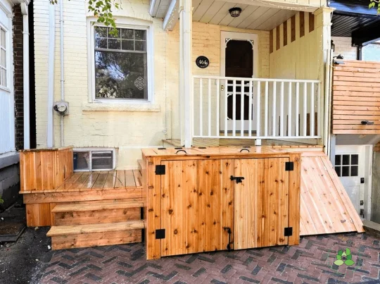 This comprehensive landscaping project in Toronto included full demolition and disposal of existing structures, deck refacing with newly built stairs, and the installation of an interlocking paver patio. The property was finished with fresh sod installation and an 8-foot-tall, fully private pressure-treated fence, creating a functional, polished, and private outdoor living space.