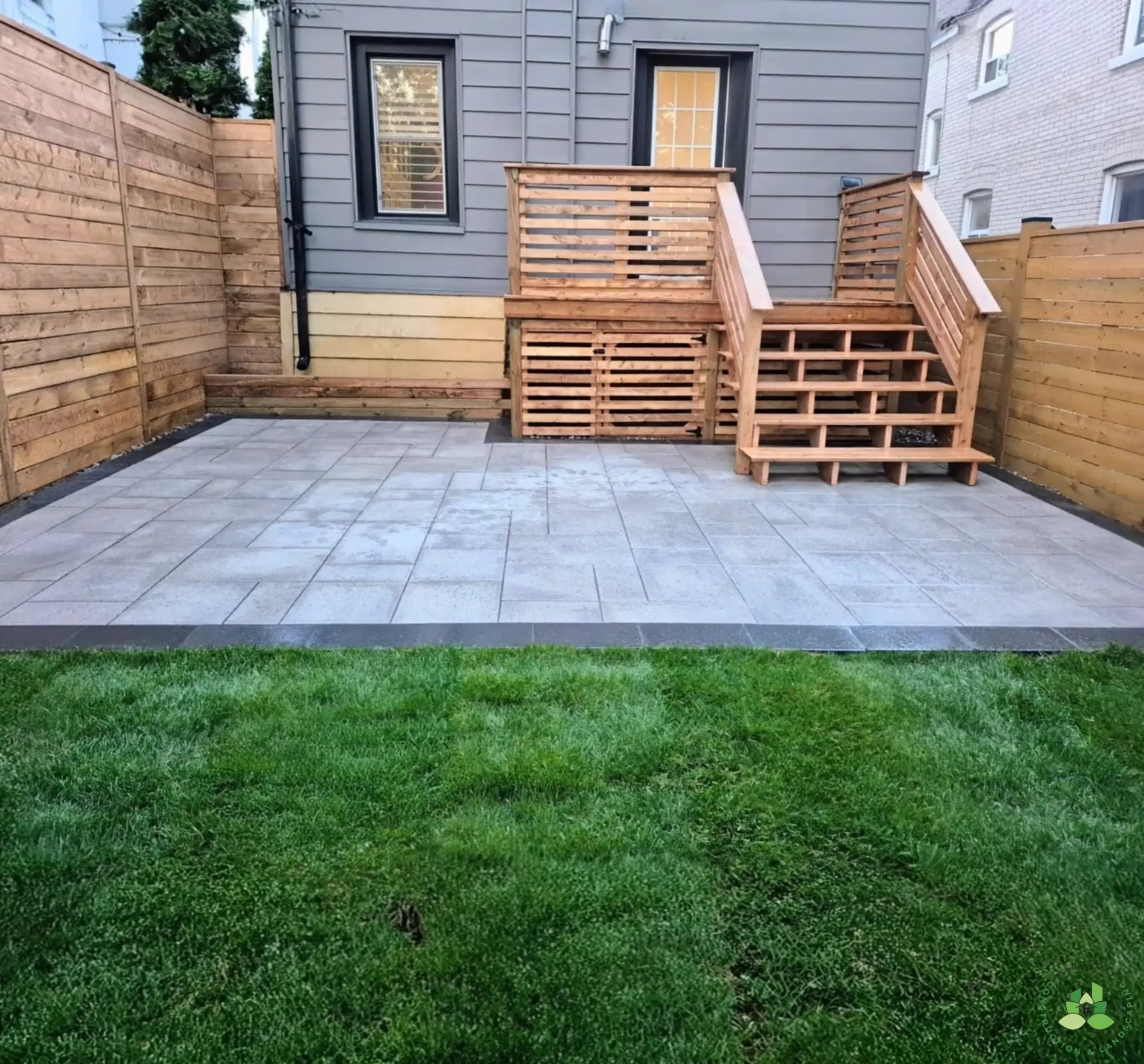 This project involved a complete backyard and exterior upgrade designed to enhance outdoor living, structure, and visual appeal. The scope of work included the installation of a modern horizontal fence and fresh sod to create a clean, private, and inviting landscape. An XL interlocking slab patio was constructed in the backyard, providing a spacious and contemporary surface for relaxing and entertaining.