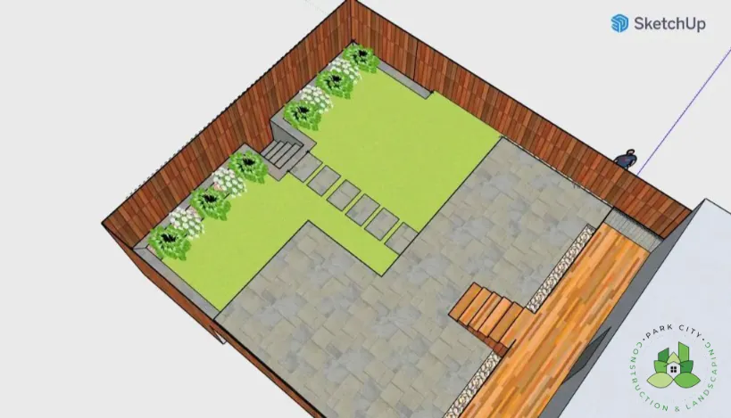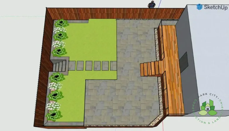 This project included the design and construction of new steps, a custom backyard patio, and a complete fence and gate installation. The entire layout was carefully planned and visualized through a detailed 3D rendering, allowing the homeowner to see the design in advance and ensuring accuracy throughout the build. The result is a cohesive, functional outdoor space that enhances both usability and curb appeal while maintaining privacy and durability.