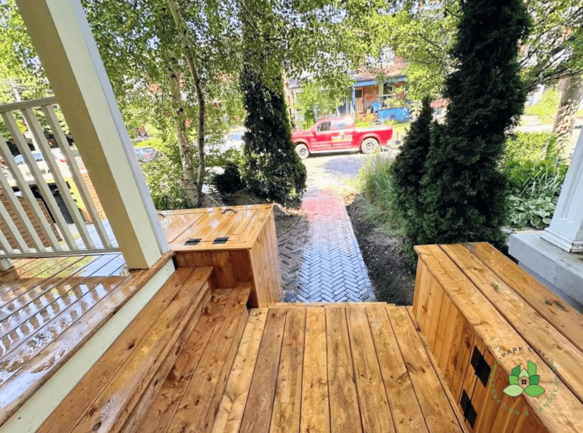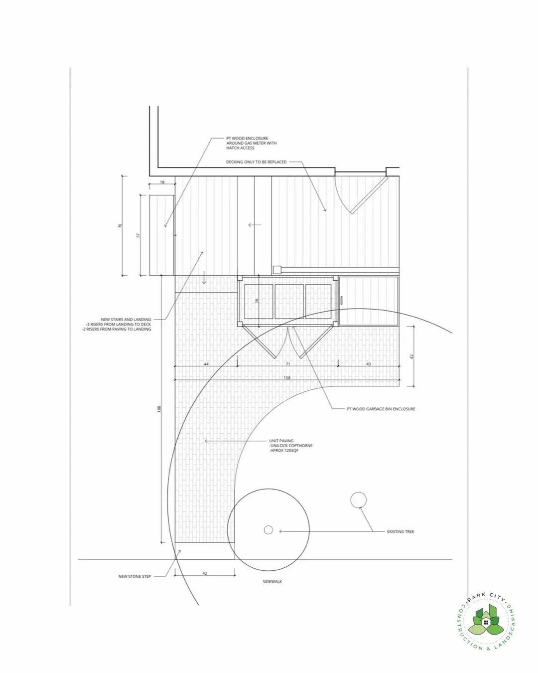 This comprehensive landscaping project in Toronto included full demolition and disposal of existing structures, deck refacing with newly built stairs, and the installation of an interlocking paver patio. The property was finished with fresh sod installation and an 8-foot-tall, fully private pressure-treated fence, creating a functional, polished, and private outdoor living space.
