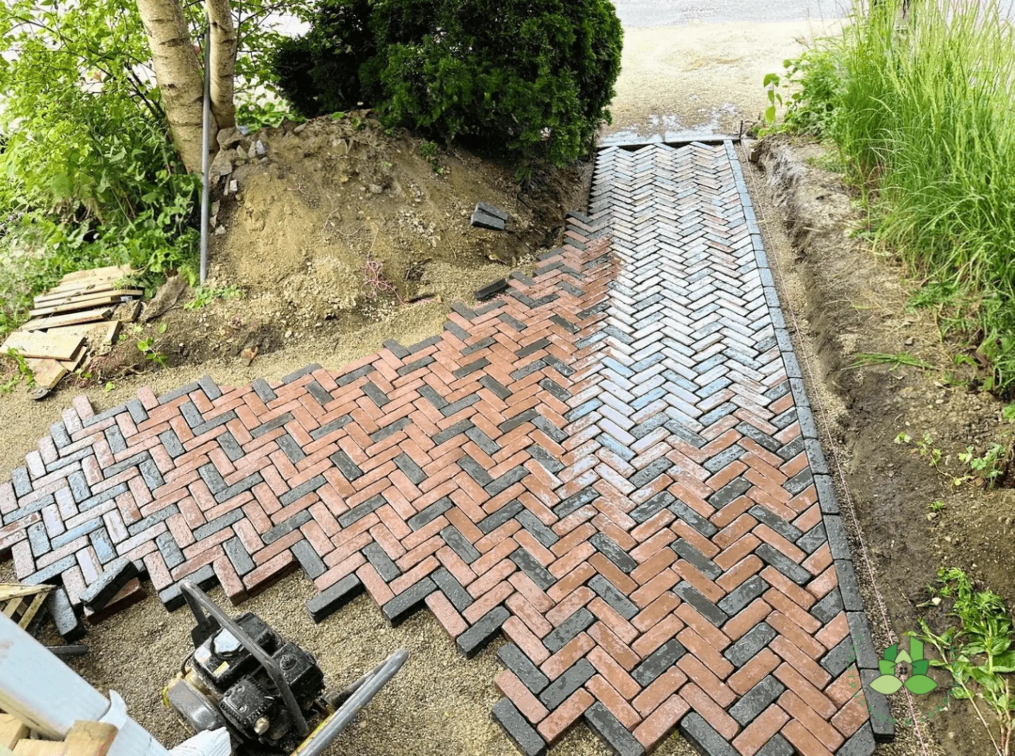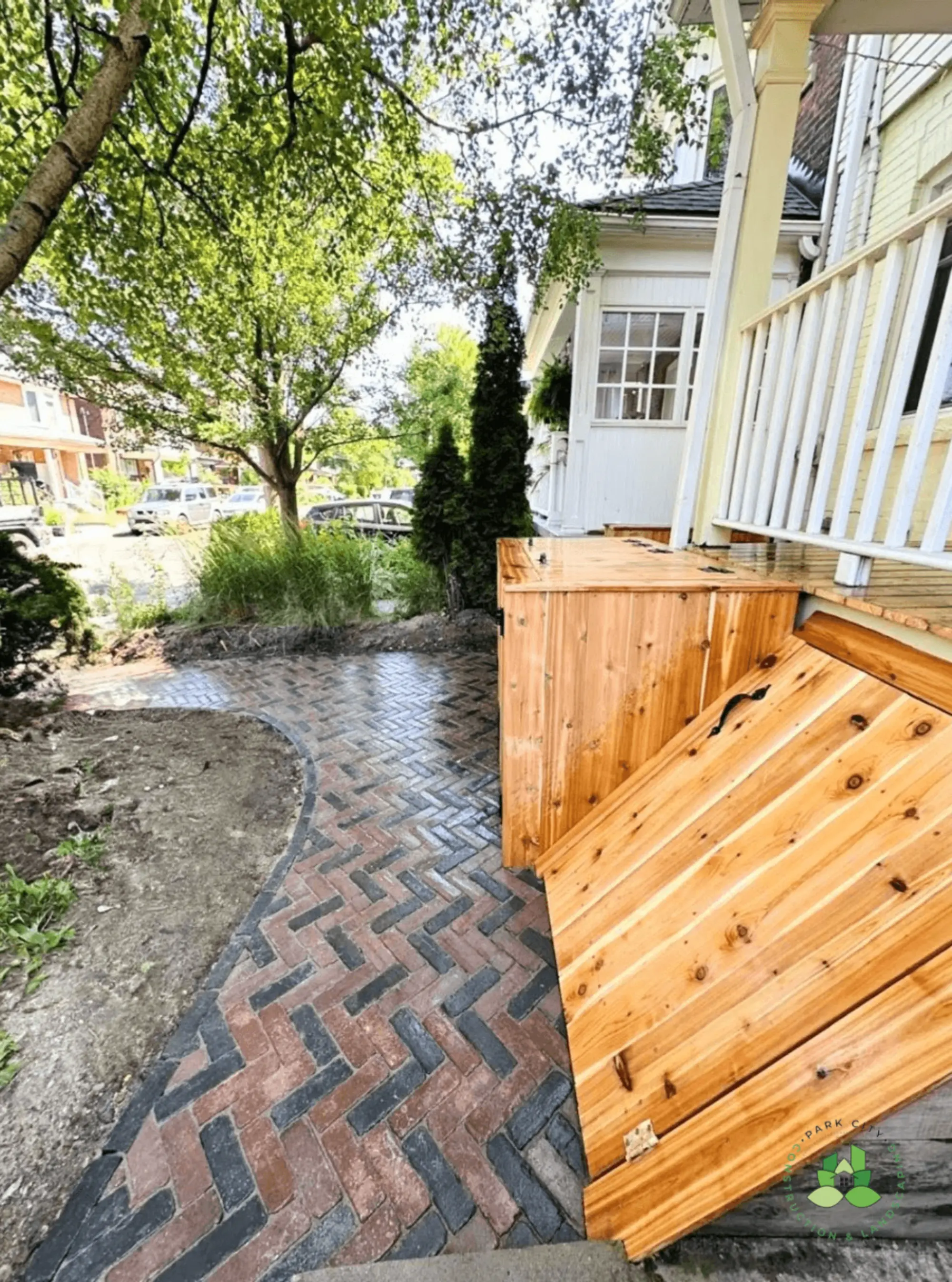 To complete the transformation, an interlocking pavers walkway was installed, providing a durable and visually cohesive path that ties the entrance seamlessly into the surrounding landscape. The finished result is a clean, inviting front entry with long-lasting craftsmanship.