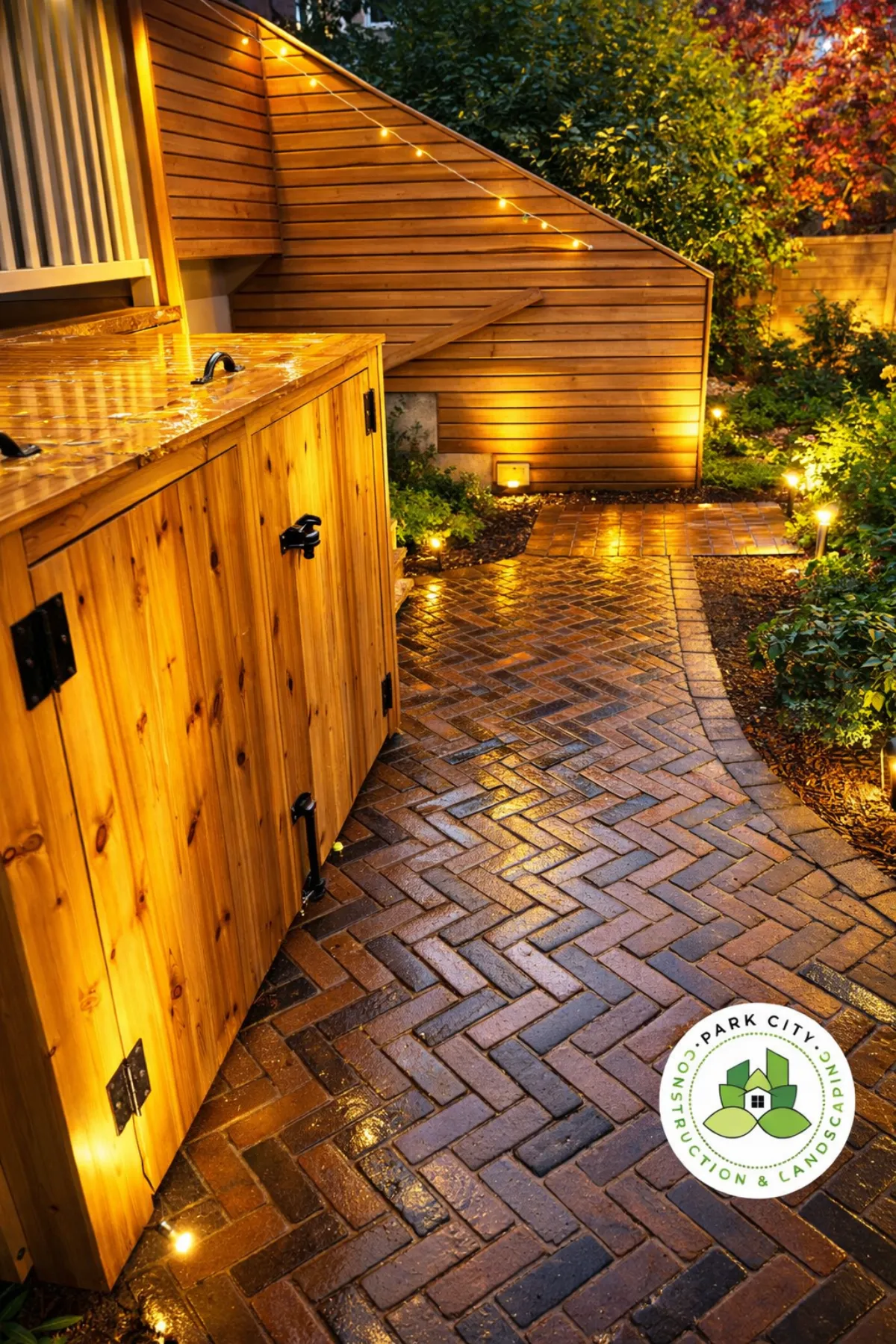 To maintain a clean and organized exterior, we built a custom garbage bin housing enclosure with pressure-treated framing and cedar cladding. Additional finishing carpentry enhanced privacy and visual cohesion around the property.