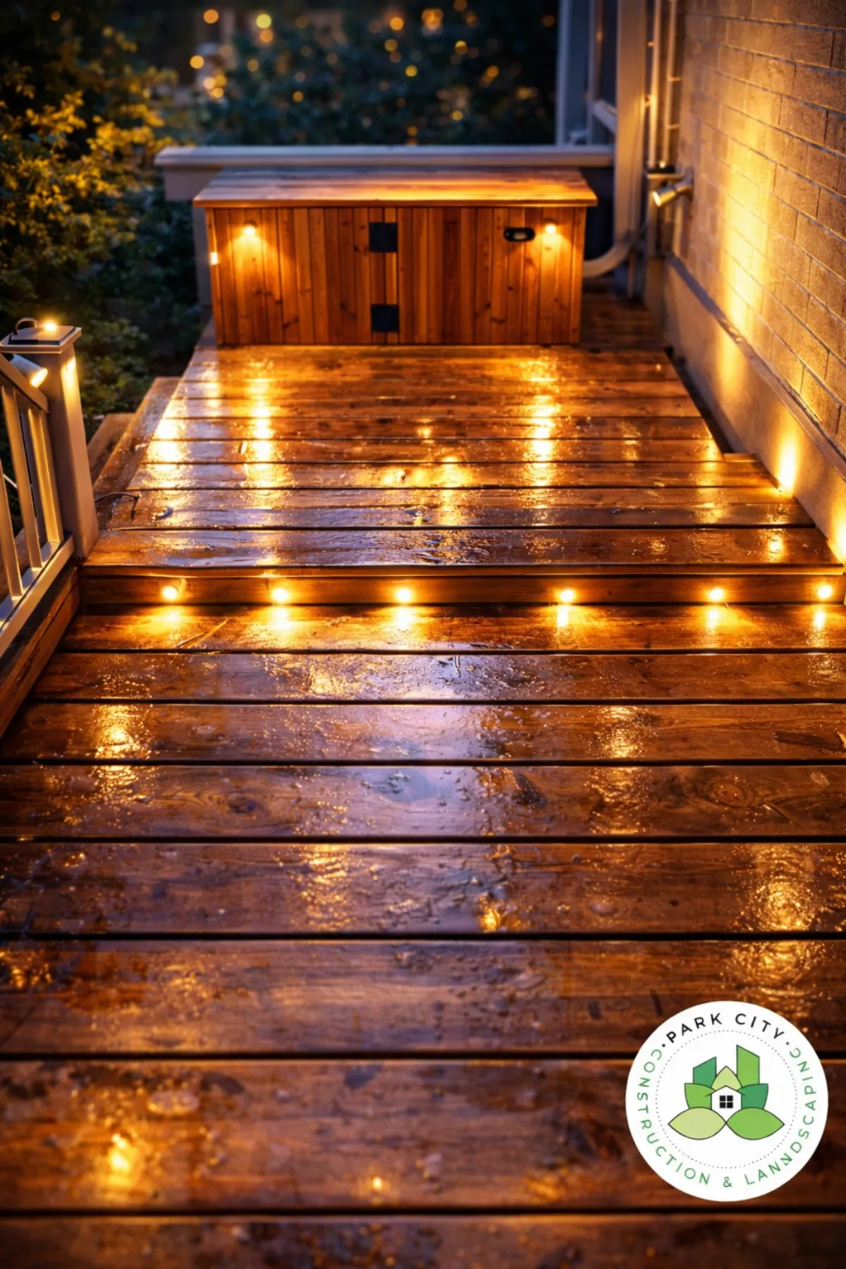 The project also included low-voltage outdoor lighting installation, tree removal, fence post replacement, and miscellaneous finishing work to ensure the property is safe and visually cohesive. Integrated deck lighting and flood lights enhance nighttime usability and highlight architectural features.