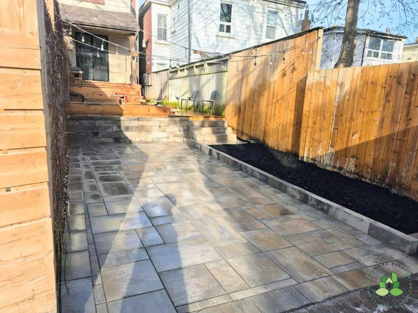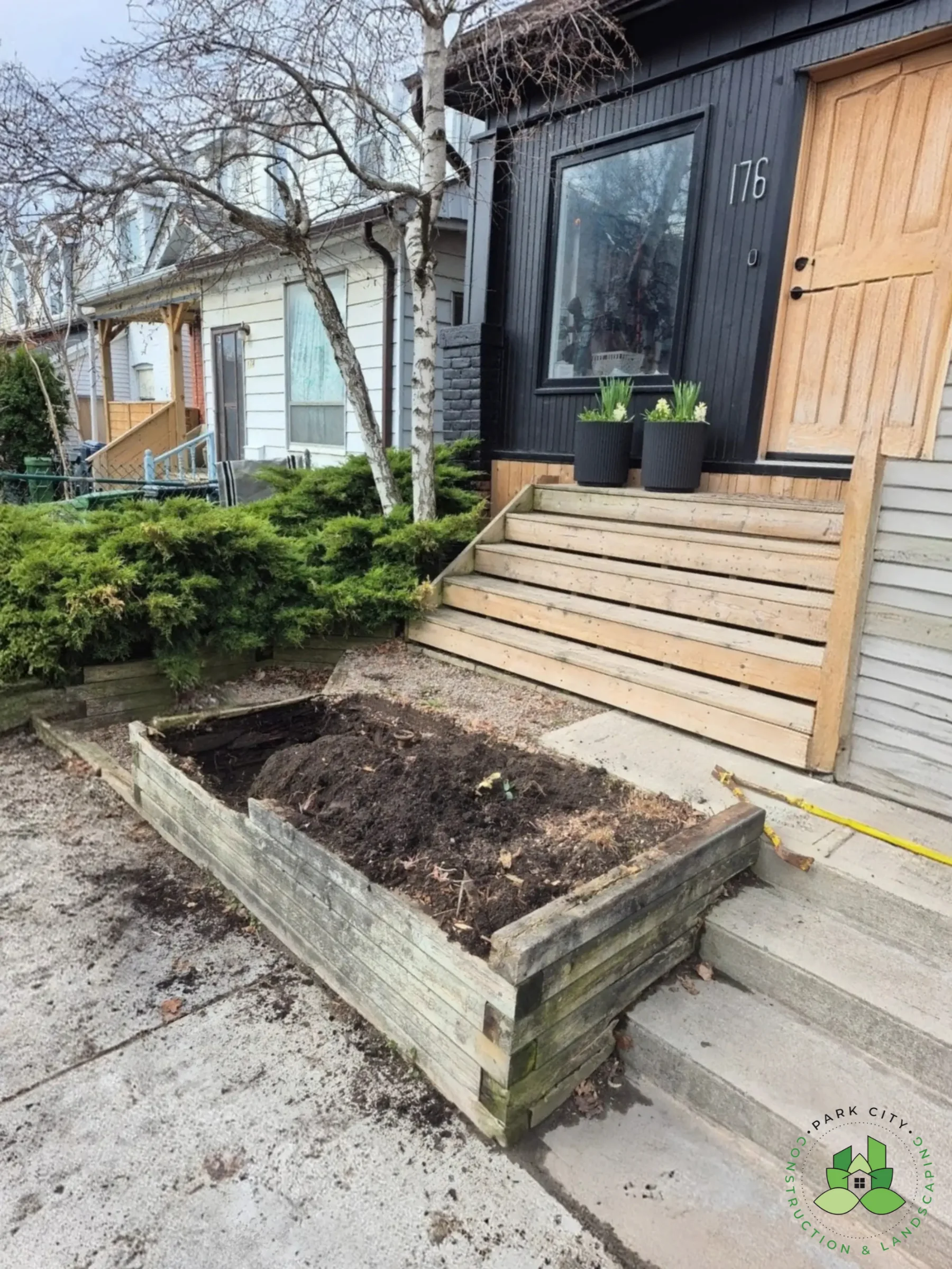This comprehensive landscaping project in Toronto included full demolition and disposal of existing structures, deck refacing with newly built stairs, and the installation of an interlocking paver patio. The property was finished with fresh sod installation and an 8-foot-tall, fully private pressure-treated fence, creating a functional, polished, and private outdoor living space.