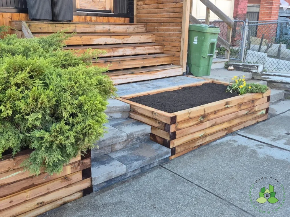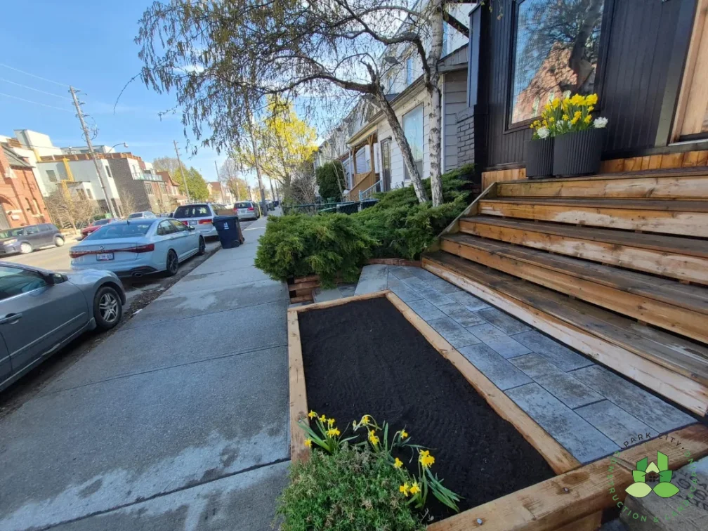 This East York landscaping project involved a comprehensive transformation of the outdoor space, combining both functionality and visual appeal. The project began with a driveway extension featuring interlocking pavers, creating a durable and stylish surface for vehicles while enhancing the overall curb appeal. A block retaining wall was constructed to manage elevation changes, complemented by precast steps that provide safe and elegant access between levels. New garden beds were installed and thoughtfully planted to add color, texture, and seasonal interest throughout the yard. Finally, fresh sod was laid to create a lush, healthy lawn, tying the entire space together. Every element of the project was carefully planned and executed to ensure a cohesive, attractive, and functional outdoor environment that homeowners can enjoy for years to come.