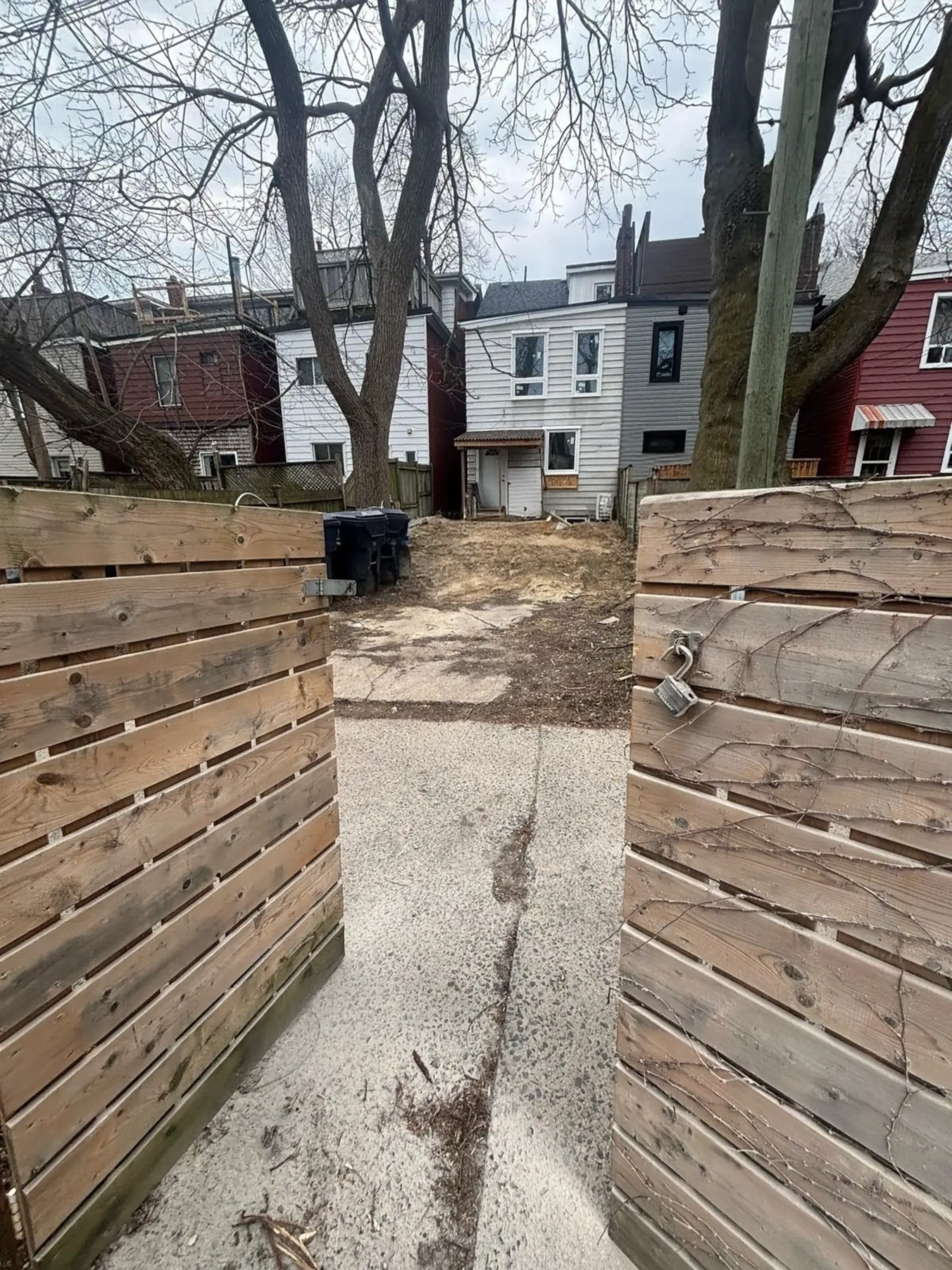 This Toronto landscaping project included removal and disposal, new concrete steps, a backyard patio, garden beds, and new fencing with a gate, creating a refreshed and functional outdoor space.
