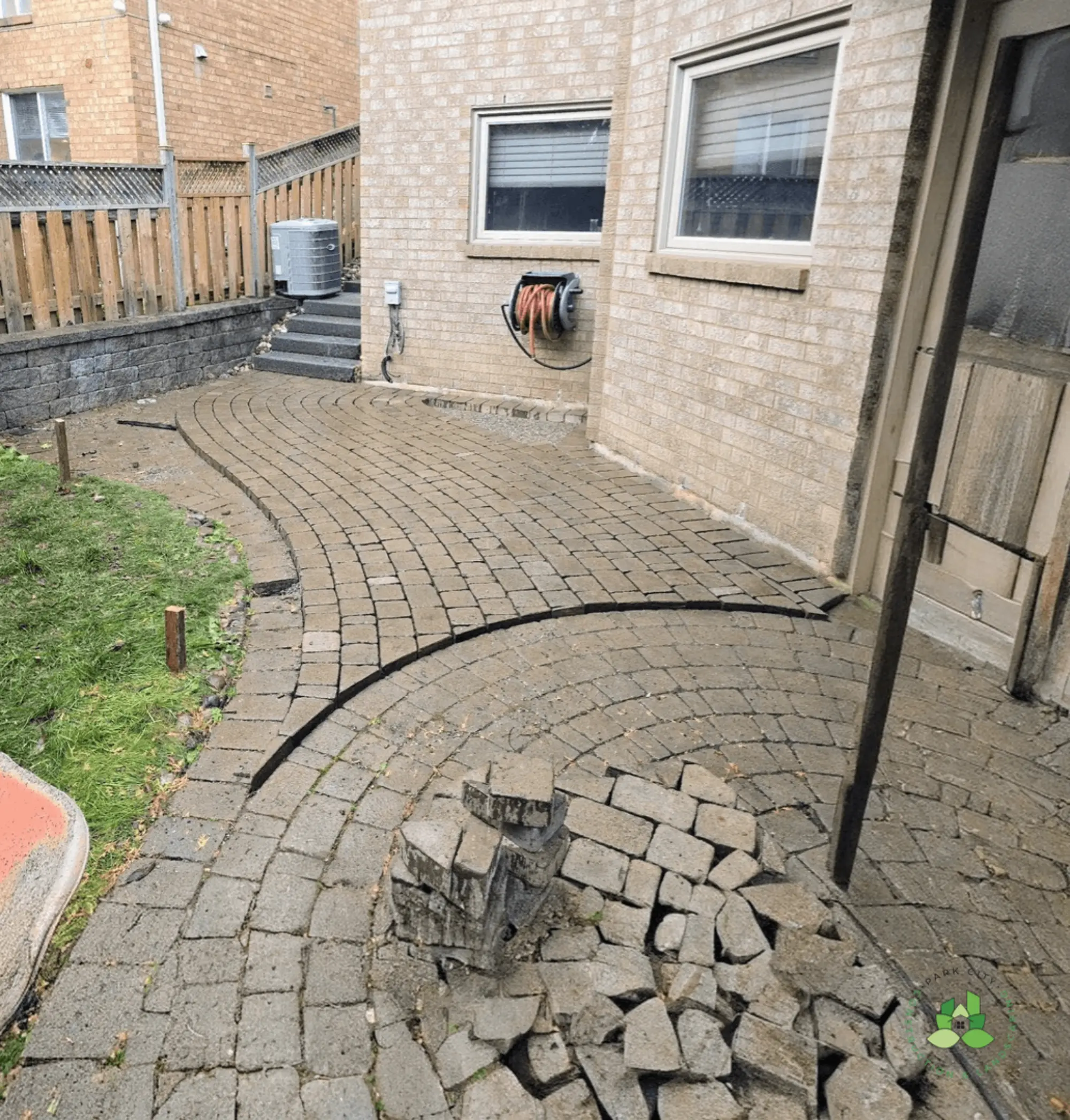 To complete the transformation, an interlocking pavers walkway was installed, providing a durable and visually cohesive path that ties the entrance seamlessly into the surrounding landscape. The finished result is a clean, inviting front entry with long-lasting craftsmanship.