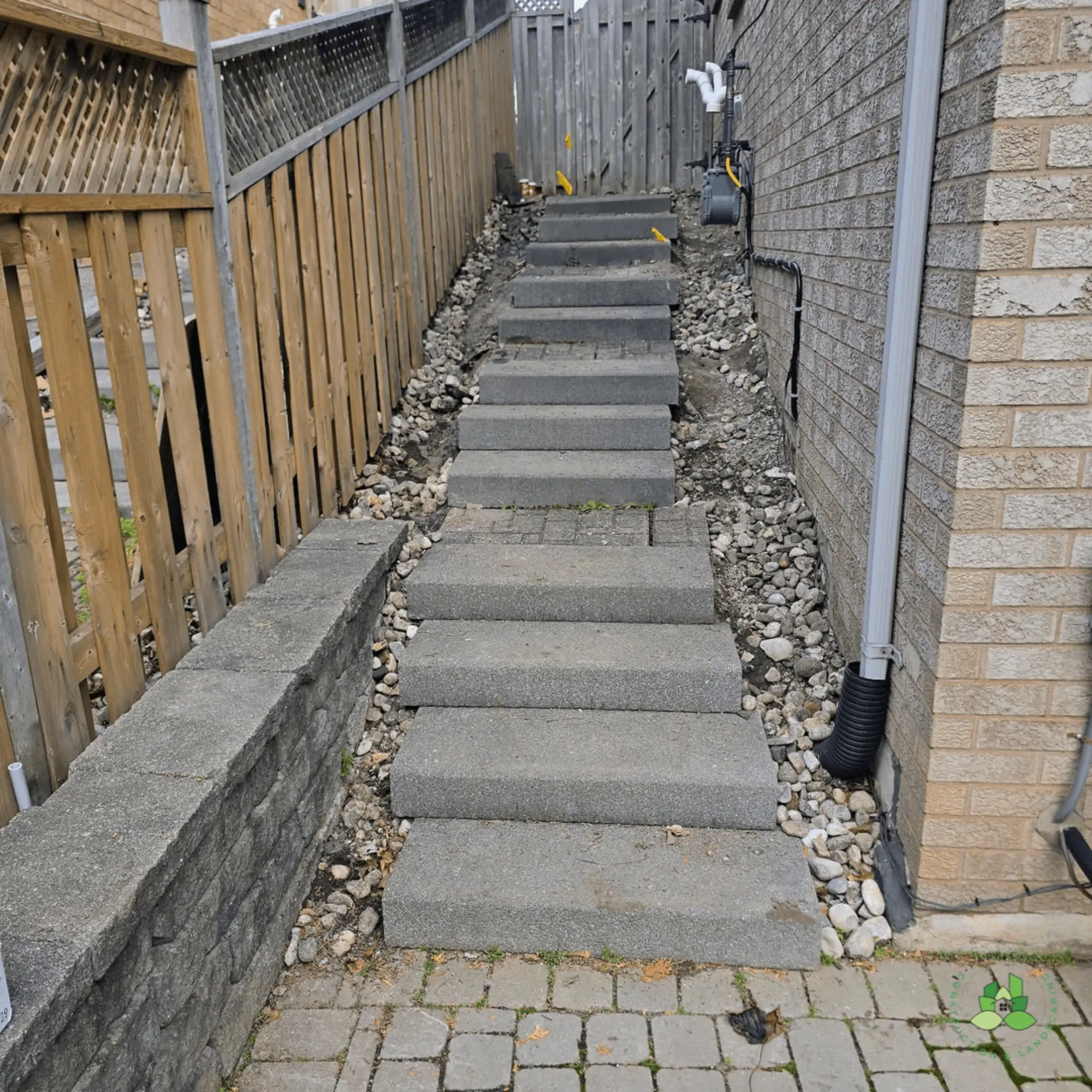 This East York landscaping project involved a comprehensive transformation of the outdoor space, combining both functionality and visual appeal. The project began with a driveway extension featuring interlocking pavers, creating a durable and stylish surface for vehicles while enhancing the overall curb appeal. A block retaining wall was constructed to manage elevation changes, complemented by precast steps that provide safe and elegant access between levels. New garden beds were installed and thoughtfully planted to add color, texture, and seasonal interest throughout the yard. Finally, fresh sod was laid to create a lush, healthy lawn, tying the entire space together. Every element of the project was carefully planned and executed to ensure a cohesive, attractive, and functional outdoor environment that homeowners can enjoy for years to come.