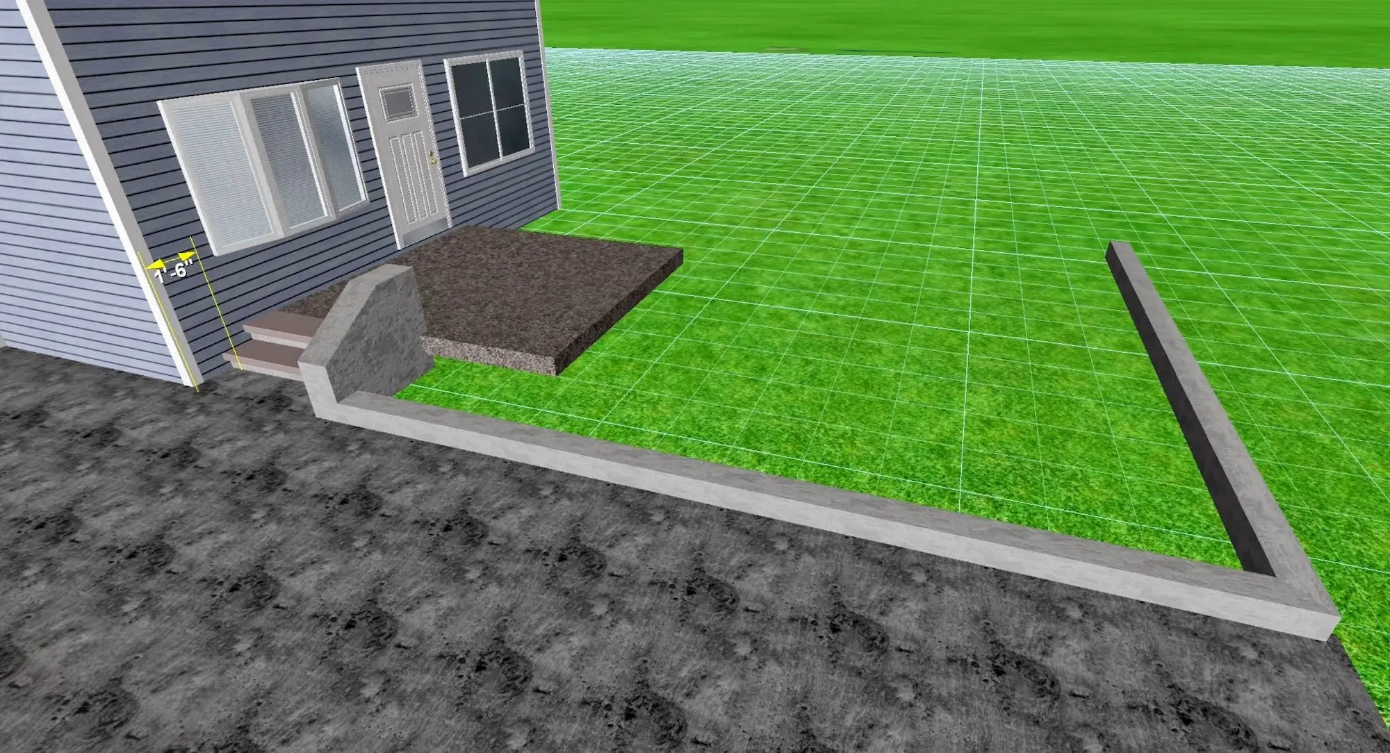 A complete landscaping project in Toronto including new steps, a backyard patio, fence and gate installation, supported by a detailed 3D rendering.