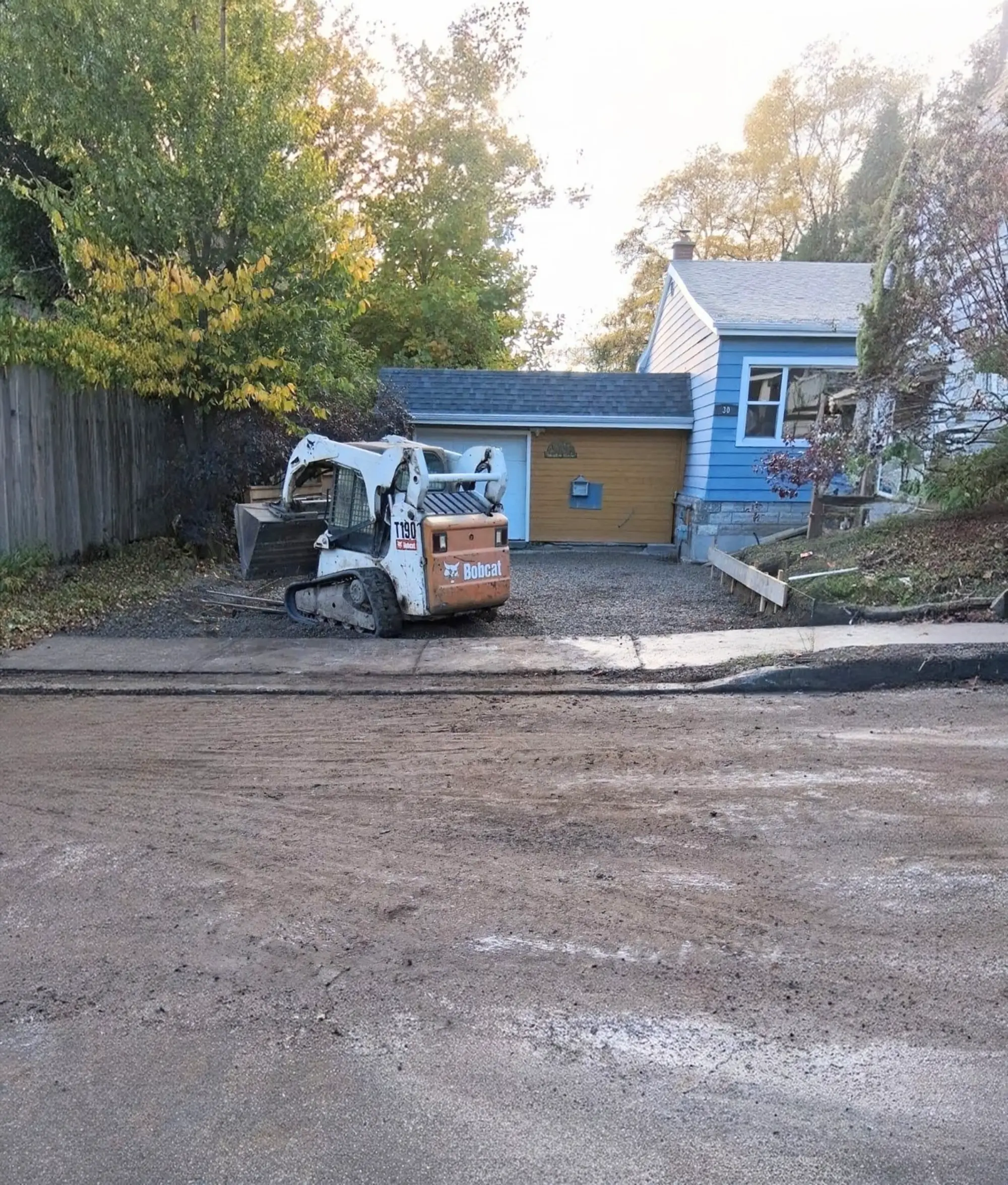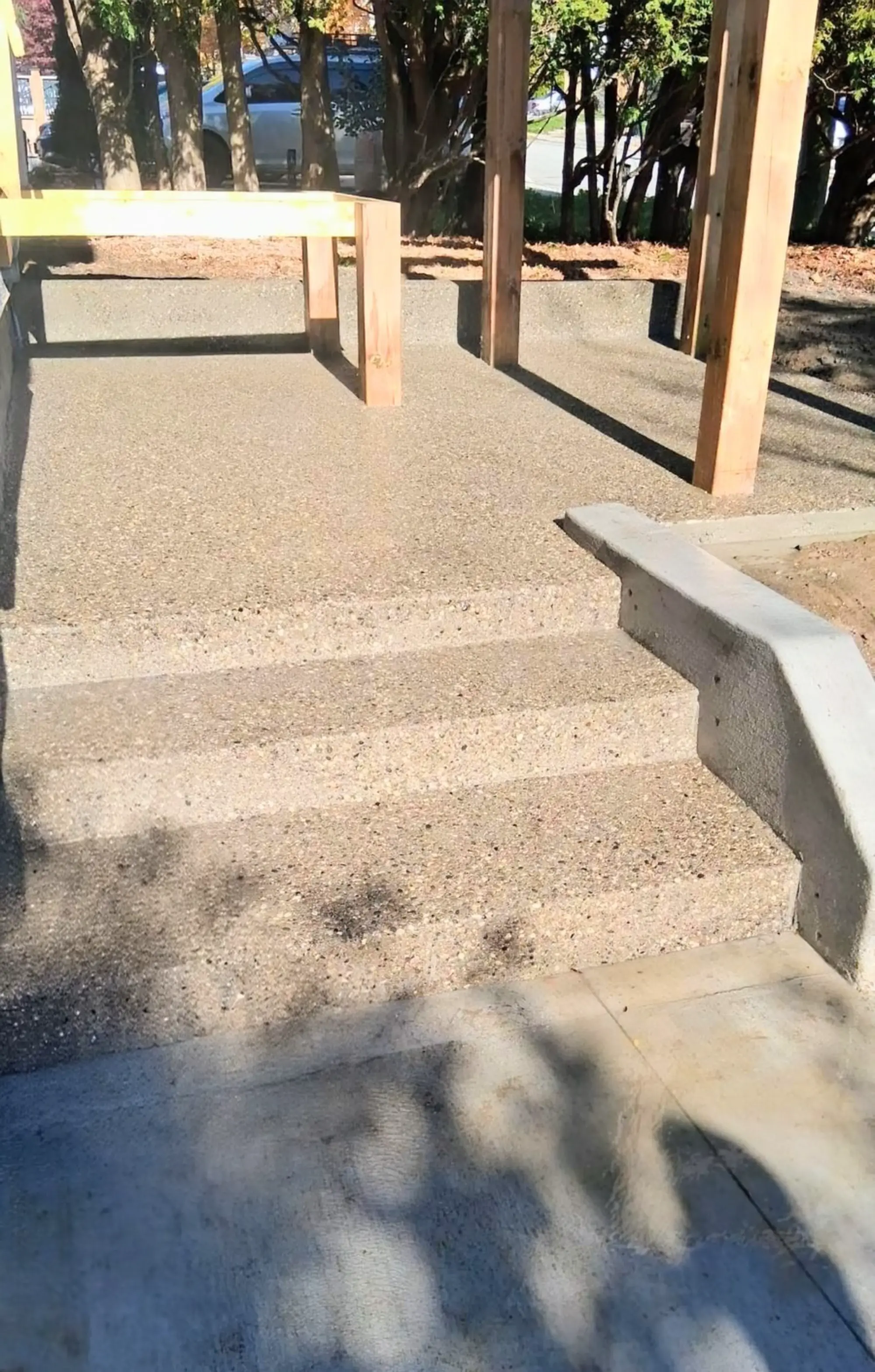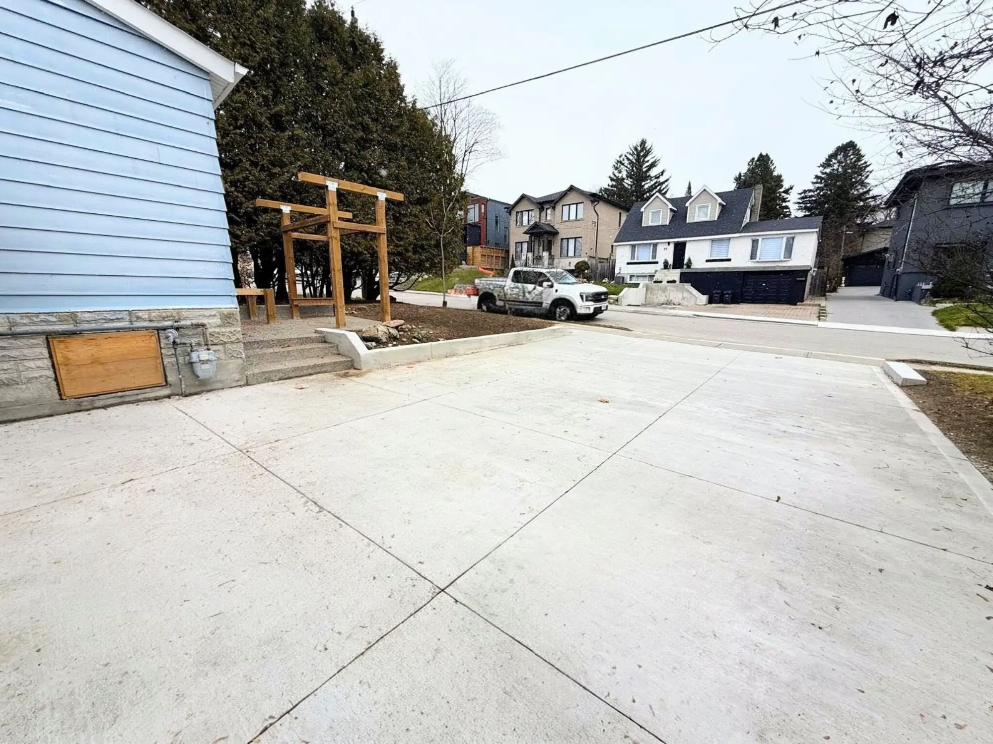 A complete concrete installation featuring a new concrete driveway and exposed aggregate pad in Scarborough, following full site preparation and finishing.