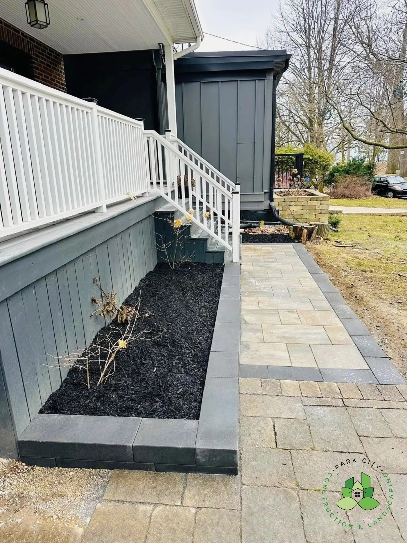 To complete the transformation, an interlocking pavers walkway was installed, providing a durable and visually cohesive path that ties the entrance seamlessly into the surrounding landscape. The finished result is a clean, inviting front entry with long-lasting craftsmanship.