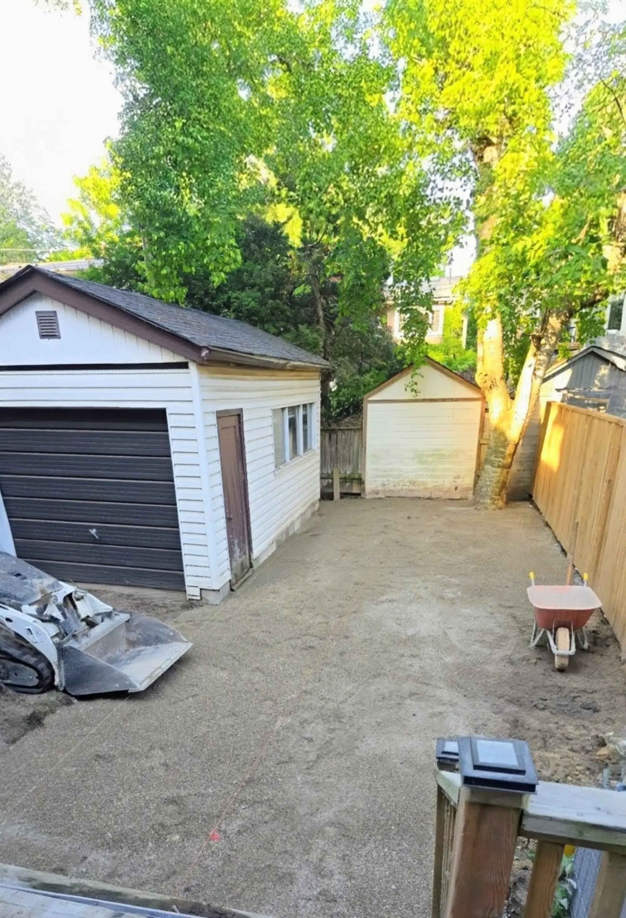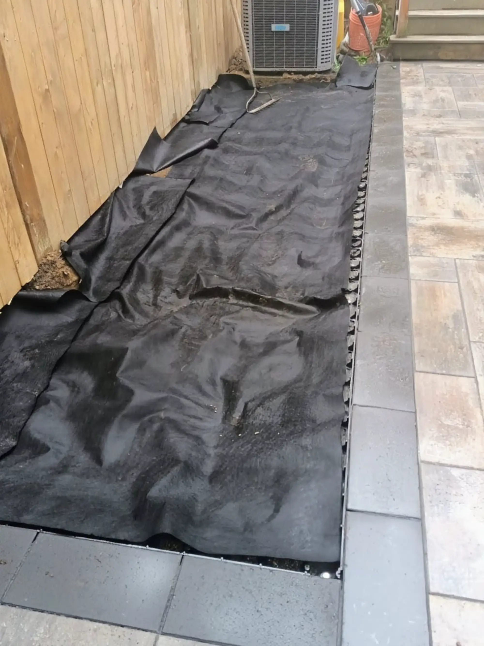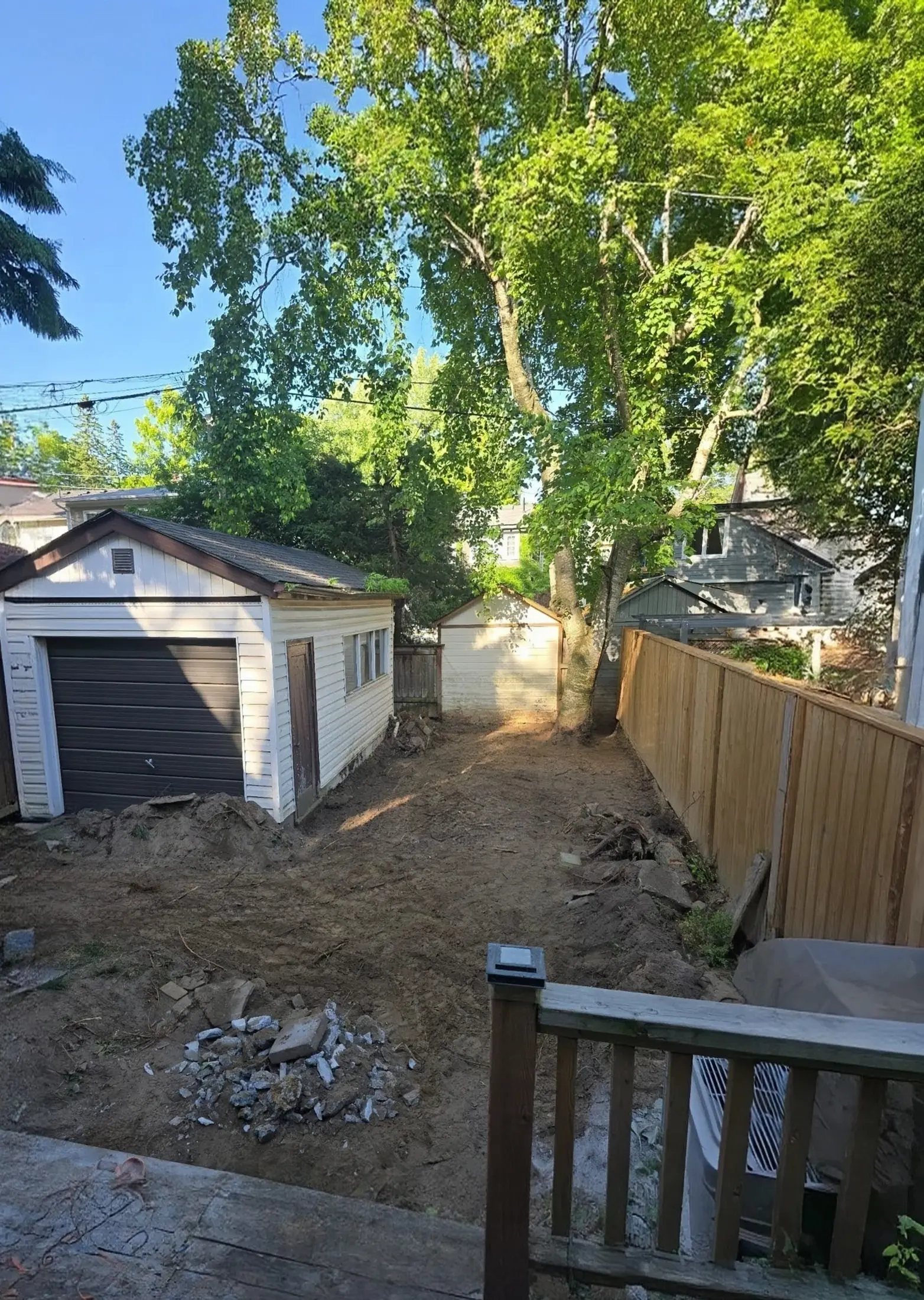 This Toronto landscaping project included removal and disposal, new concrete steps, a backyard patio, garden beds, and new fencing with a gate, creating a refreshed and functional outdoor space.