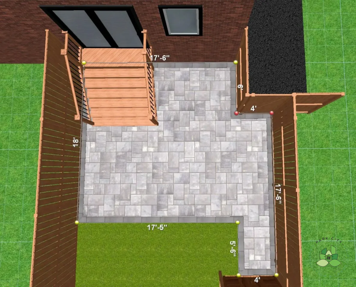 This project included the design and construction of new steps, a custom backyard patio, and a complete fence and gate installation. The entire layout was carefully planned and visualized through a detailed 3D rendering, allowing the homeowner to see the design in advance and ensuring accuracy throughout the build. The result is a cohesive, functional outdoor space that enhances both usability and curb appeal while maintaining privacy and durability.